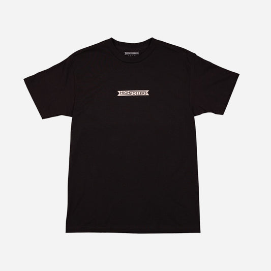 High Rollers - Coat of Arms Ribbon Logo Tee - Black Stout/Cream