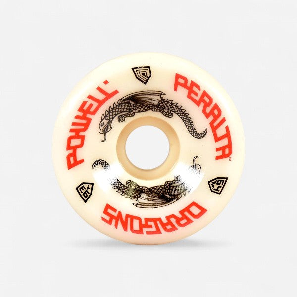 About Dragon Formula: The amazing new Dragon Formula™ (DF) Urethane used to create these wheels is another industry leading innovation from Powell • Peralta. DF-93A Dragons will not only roll over rough terrain, but also grip and slide like 99A and 101A wheels do, so that you can do all your normal tricks and more on the greater range of skate terrains made skateable by its softer 93A hardness.